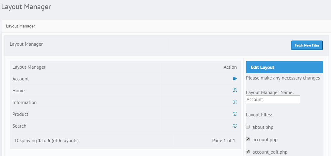 Step 6: To register any new file created (for layout) to layout file listing, Click fetch new files button.